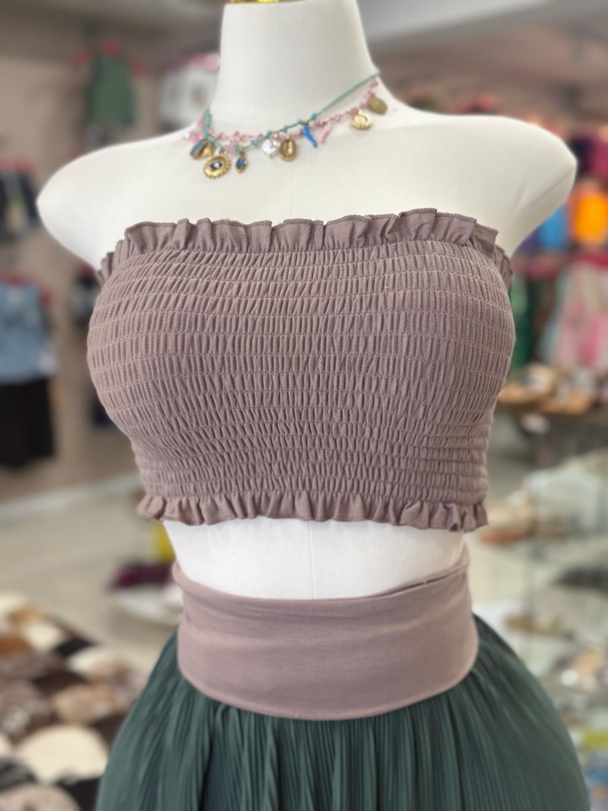 This tiefront smocked top is the ultimate in versatility! Slay any look with this quirky top that can be worn in a variety of ways. From casual to sassy, this top has got you covered (quite literally)!
