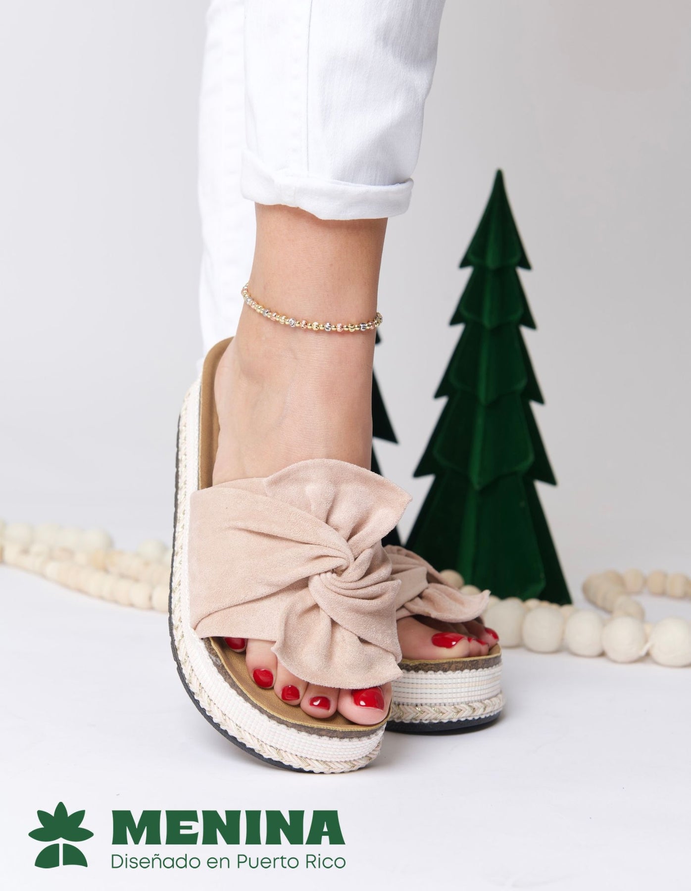 Step out in style with Nappa 3, featuring a stunning bella flatform with a yute base. The elegant bow design exudes beauty and sophistication. Embrace the essence of luxury with Nappa 3.