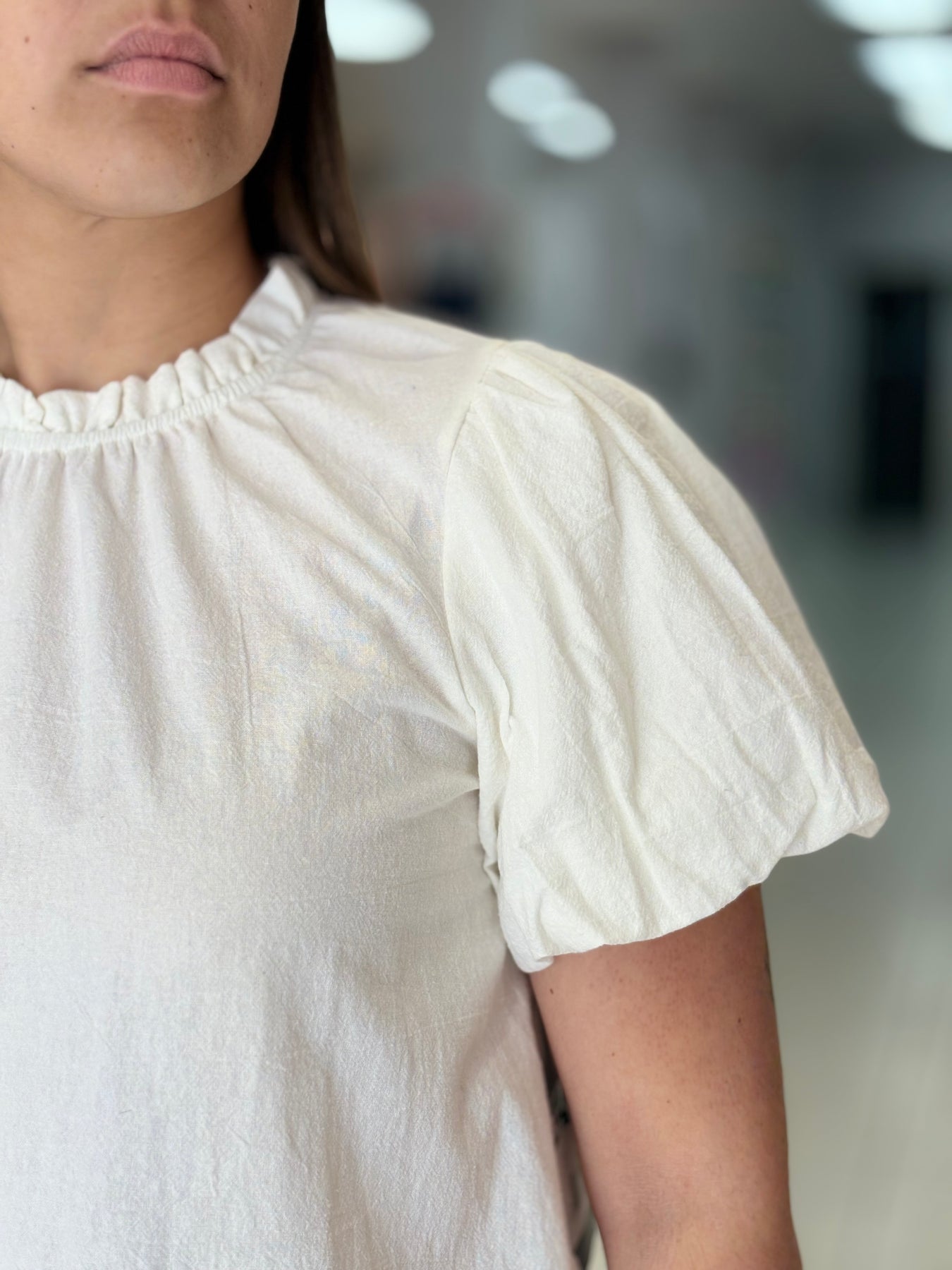 The Ballon Sleeve top combines fashion-forward style with ultimate comfort. Available in a variety of vibrant colors or classic white, this top is perfect for the fashionista in you! Stay comfortable all day while looking effortlessly chic.