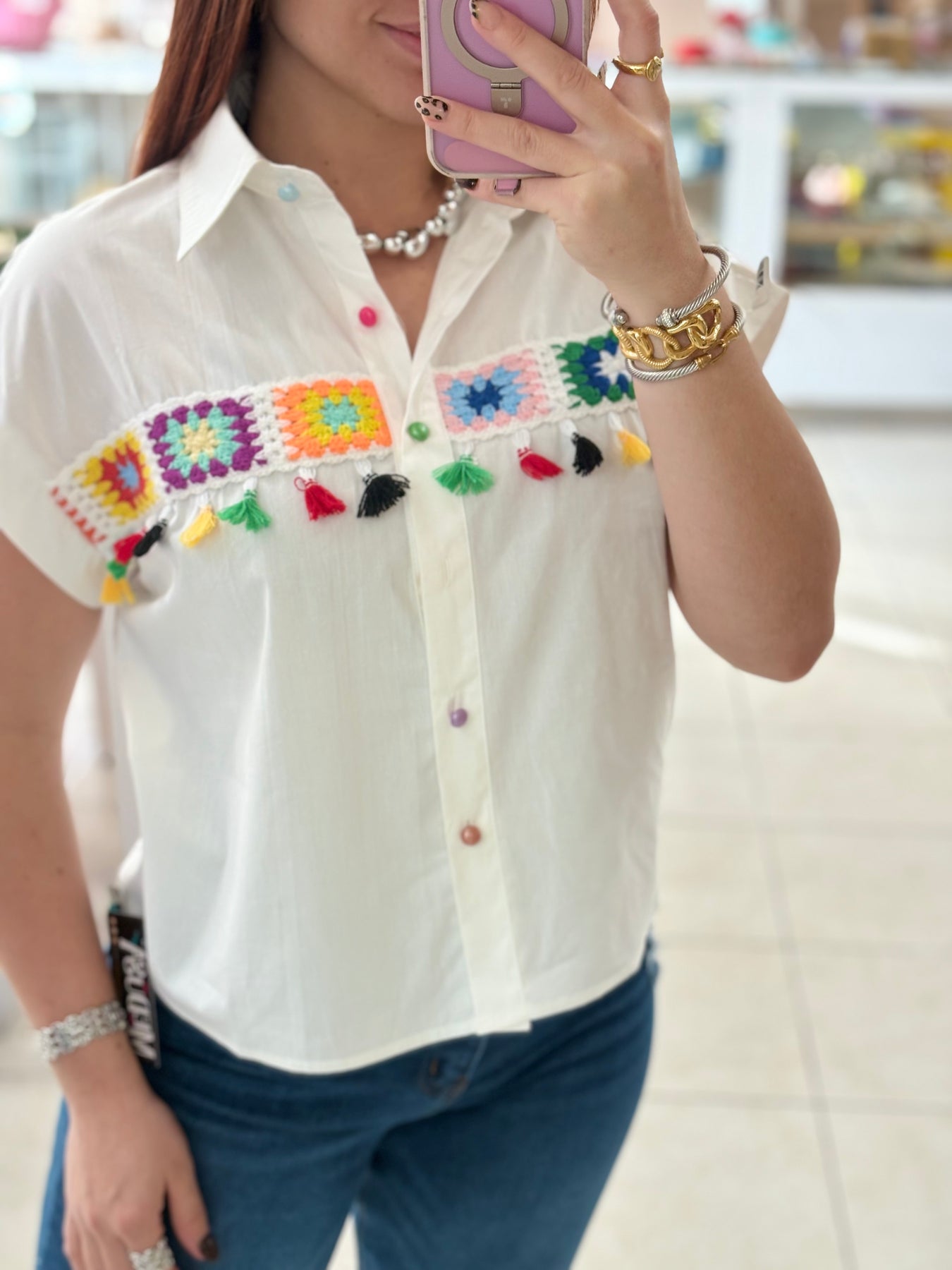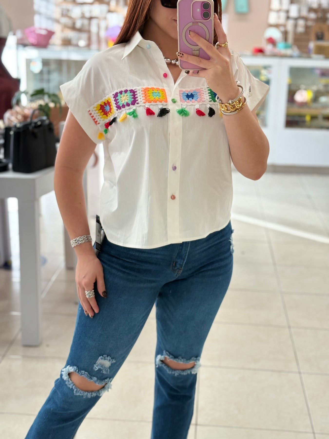 Liora's Bohemia collection features stylish tassel crochet, adding a touch of elegance and detail to your wardrobe. Embrace the bohemian lifestyle with this versatile and trendy accessory. Upgrade your outfit and turn heads with the unique flair of the Liora collection.