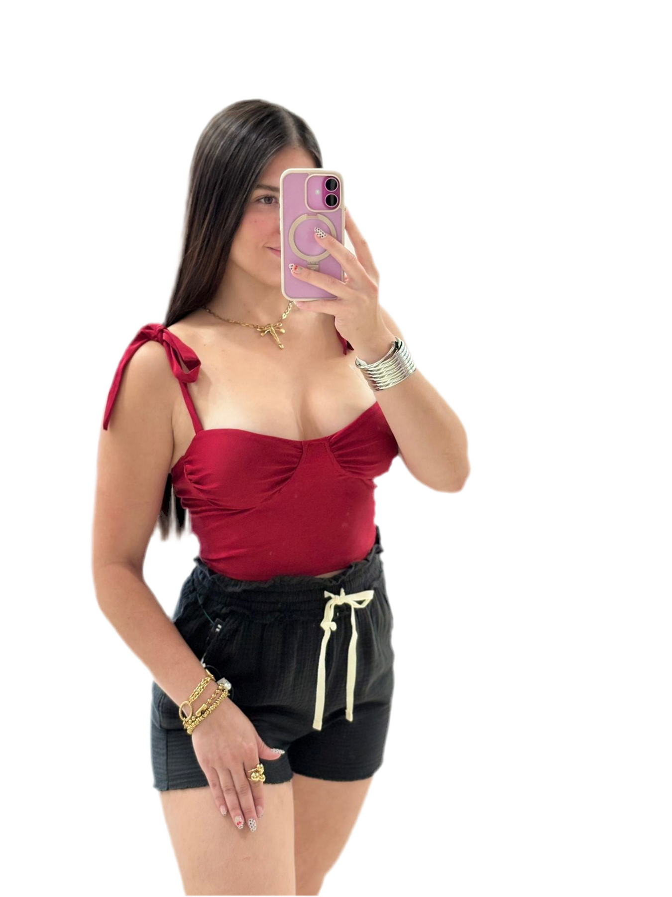 Effortlessly feminine and chic, our Bowie Top is a must-have in your wardrobe. The lovely sweetheart neckline and delicate bow tie detail on the shoulder add a touch of elegance, while the stretchy fabric ensures a comfortable and flattering fit. Perfect for any occasion.
