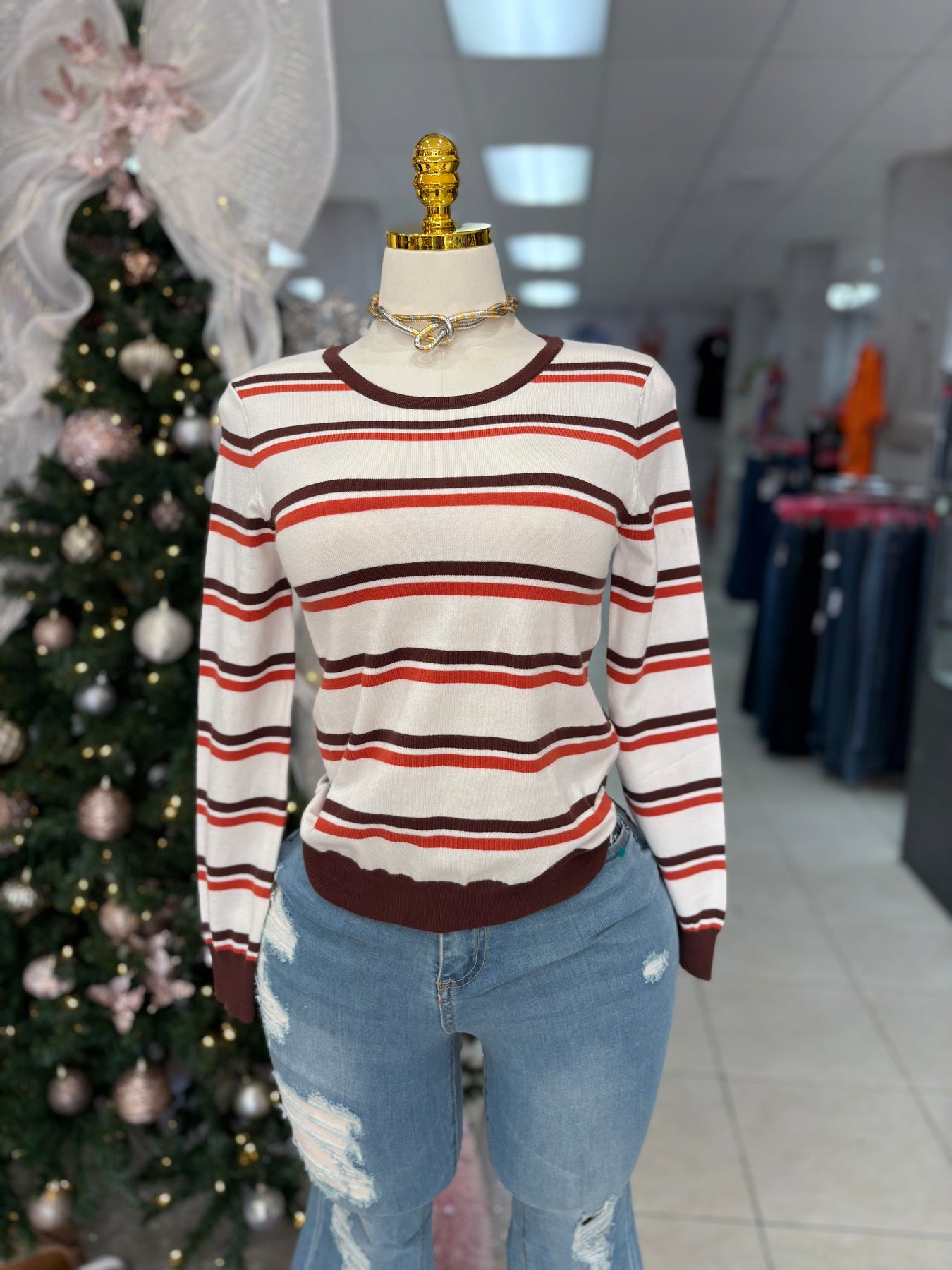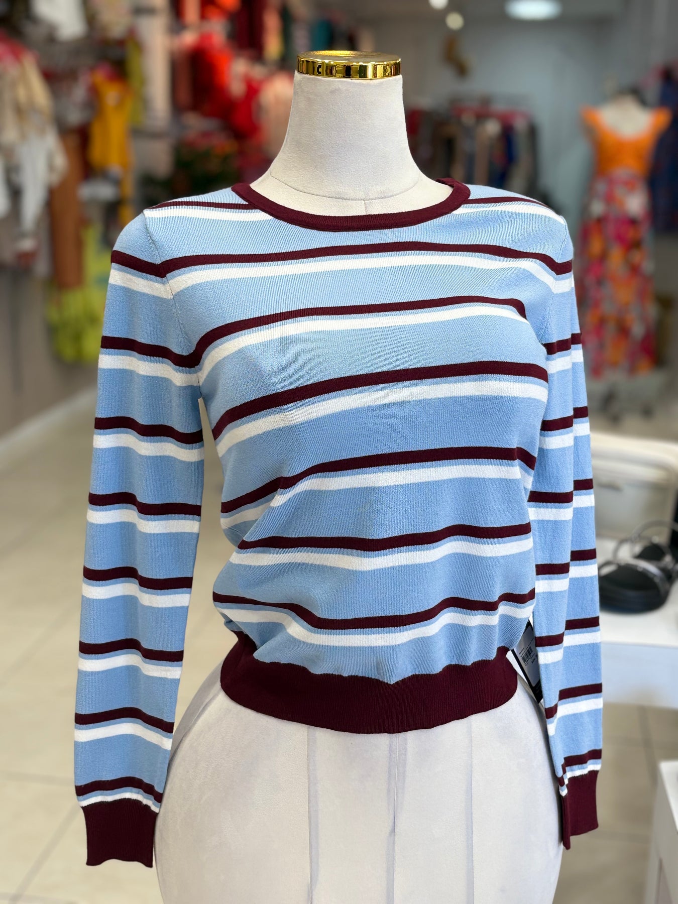 Elevate your wardrobe with the SanFran Top, a stylish long sleeve sweater featuring a vibrant multi-stripe design. Its round neck adds a classic touch, making it perfect for both casual outings and cozy gatherings. Embrace comfort and creativity in your everyday look!