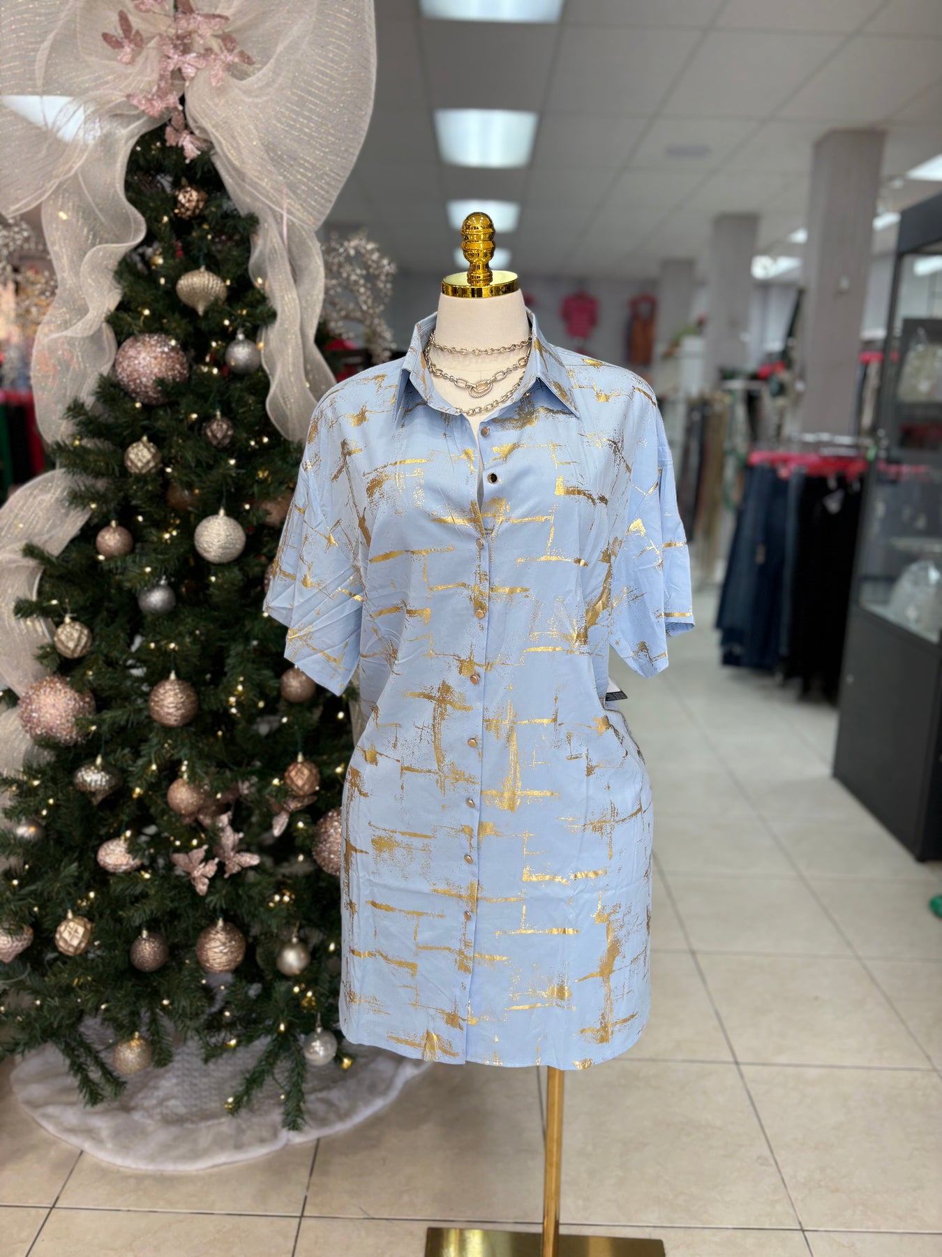 Feel confident and beautiful in the Aurum Dress - designed for plus-size curvy women. With short sleeves and a short shirtdress style, this versatile piece will flatter your figure and keep you looking chic and stylish. Perfect for any occasion, this dress will leave you feeling comfortable and confident all day long.