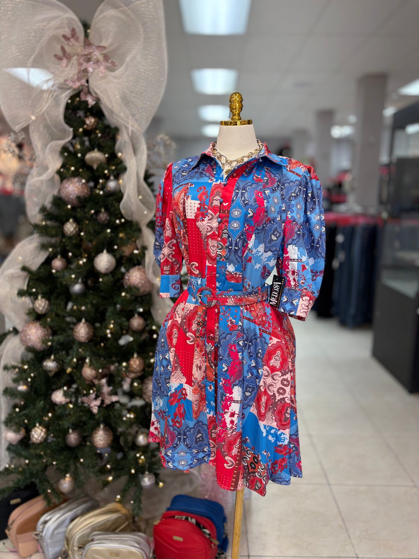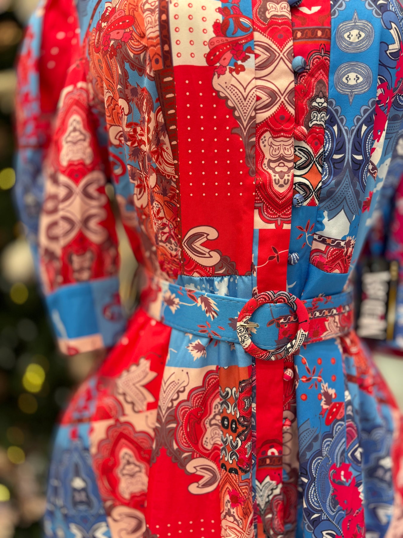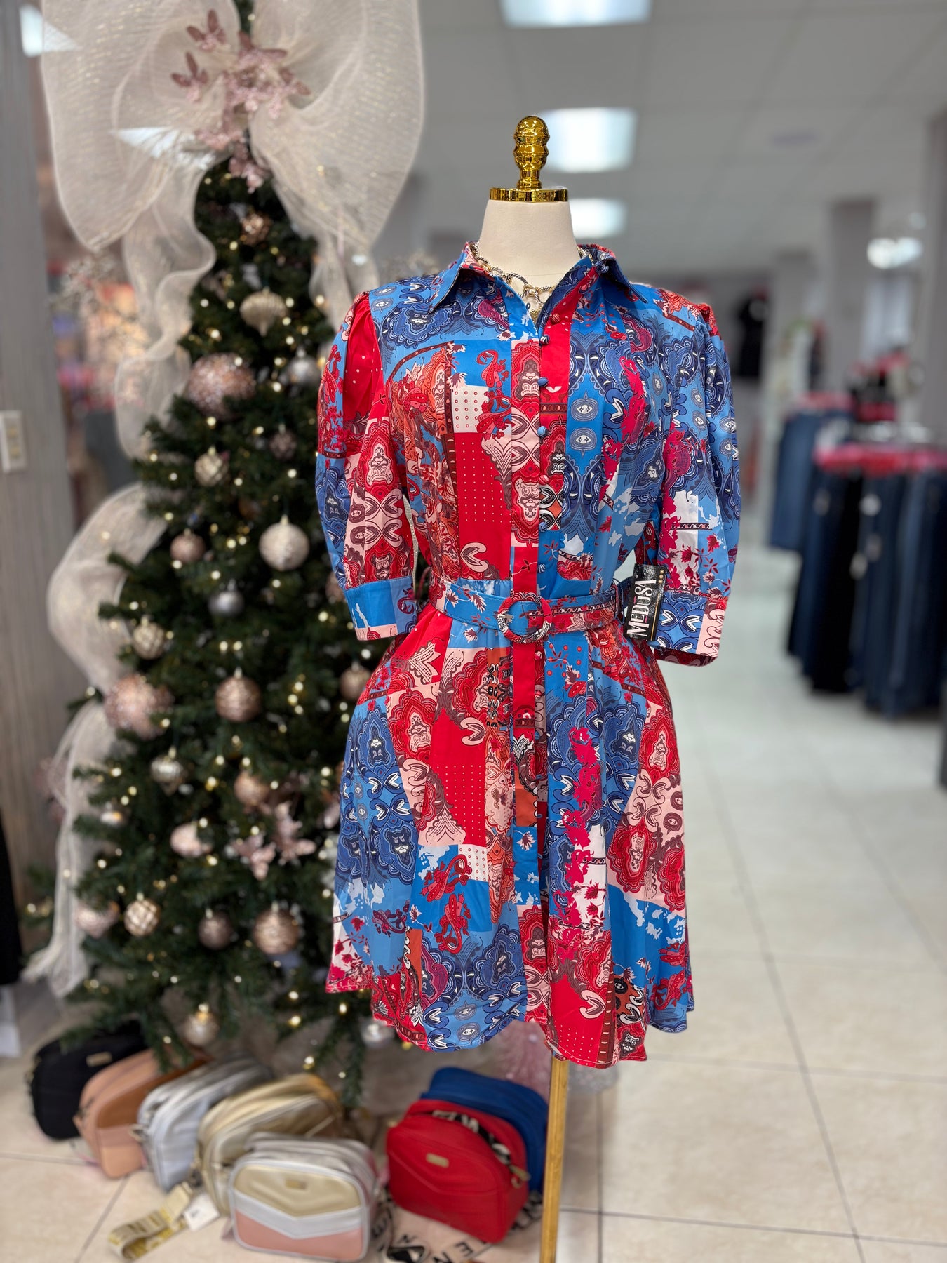 This stunning Barocco Dress boasts a flattering button down design and a lively printed pattern. The versatile 3/4 sleeves add an elegant touch. Perfect for any occasion, this dress will have you looking and feeling confident and stylish.