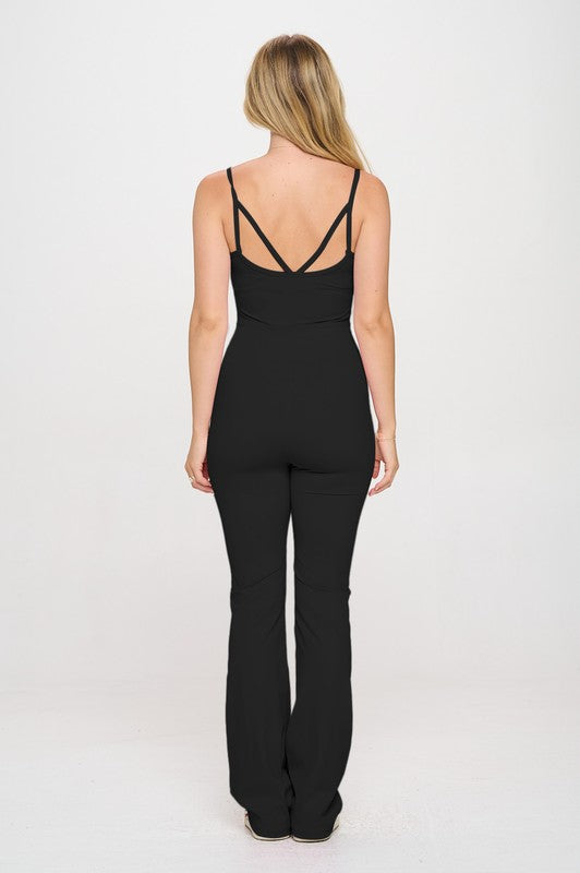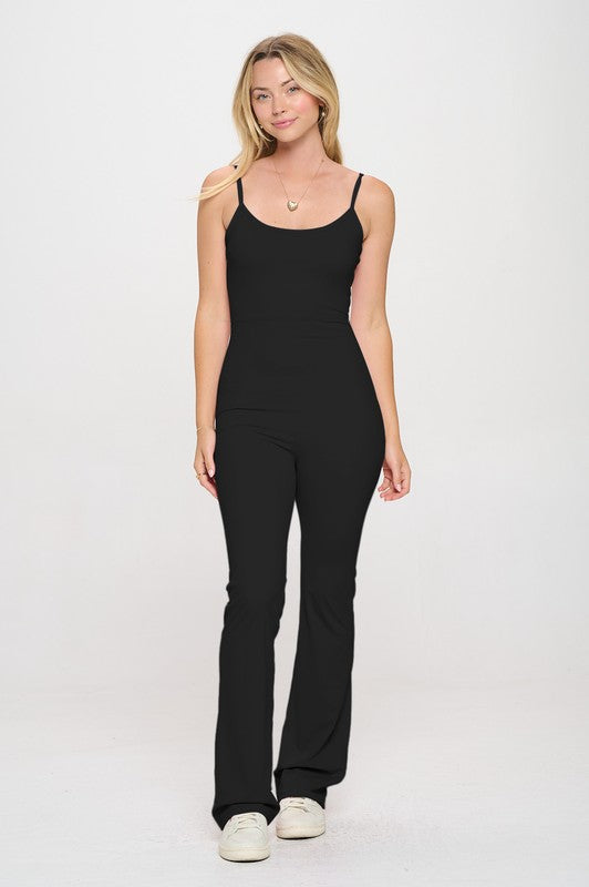 Get ready to move and groove in our Kaia Unitard! The active flare cami jumpsuit features spaghetti crossover straps and a flattering flare leg design. Perfect for all your workout needs, this unitard will have you looking and feeling your best.