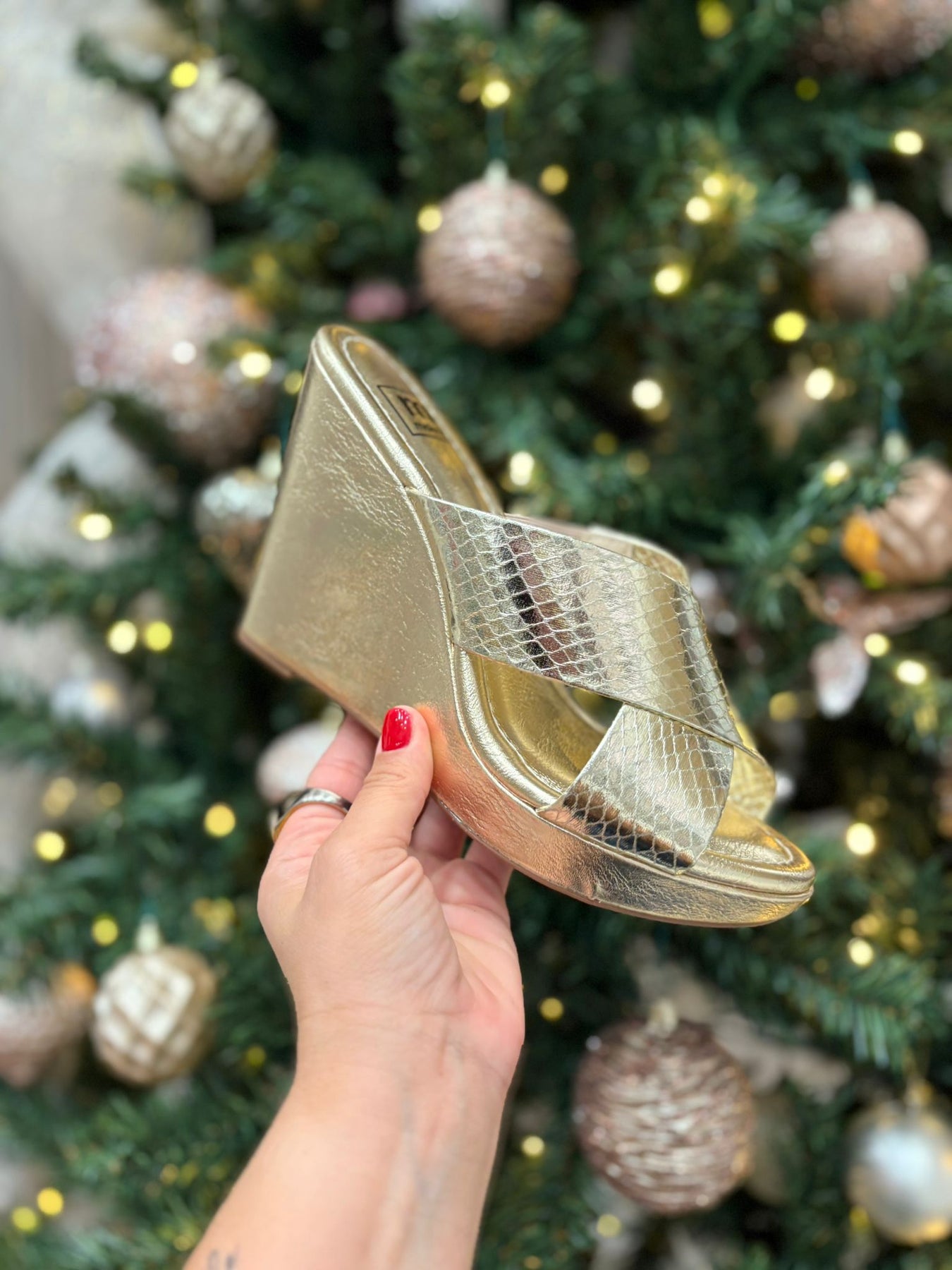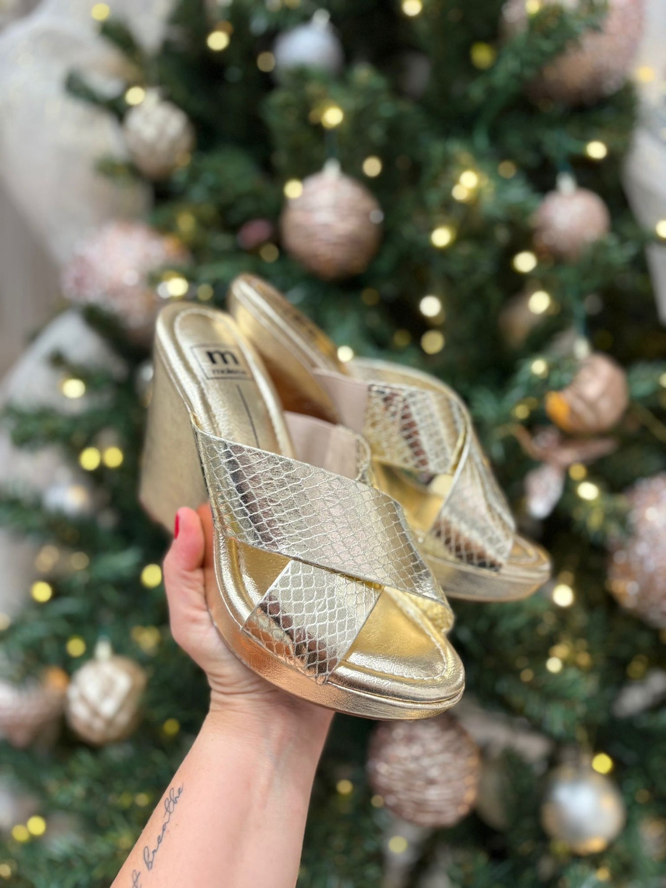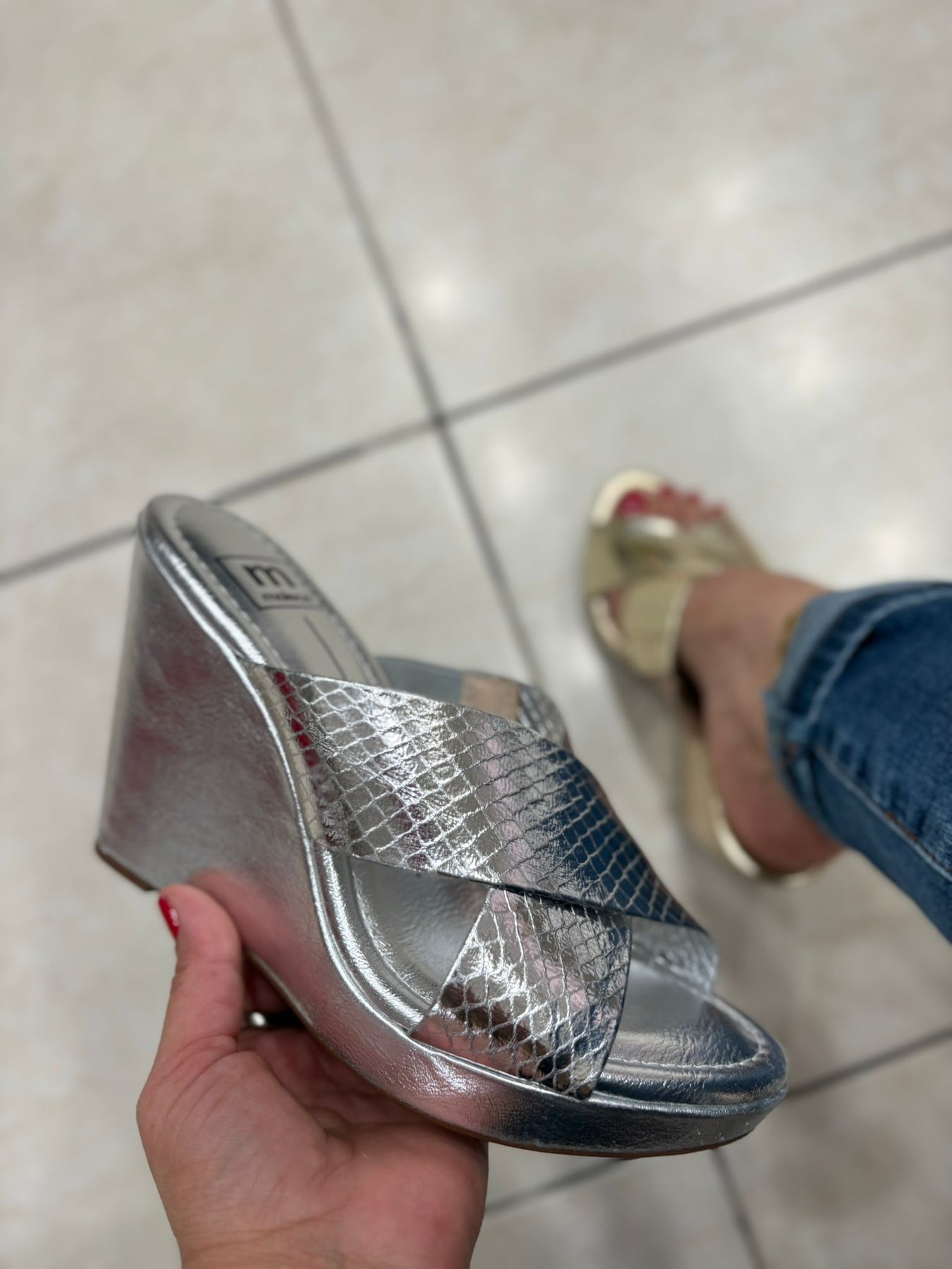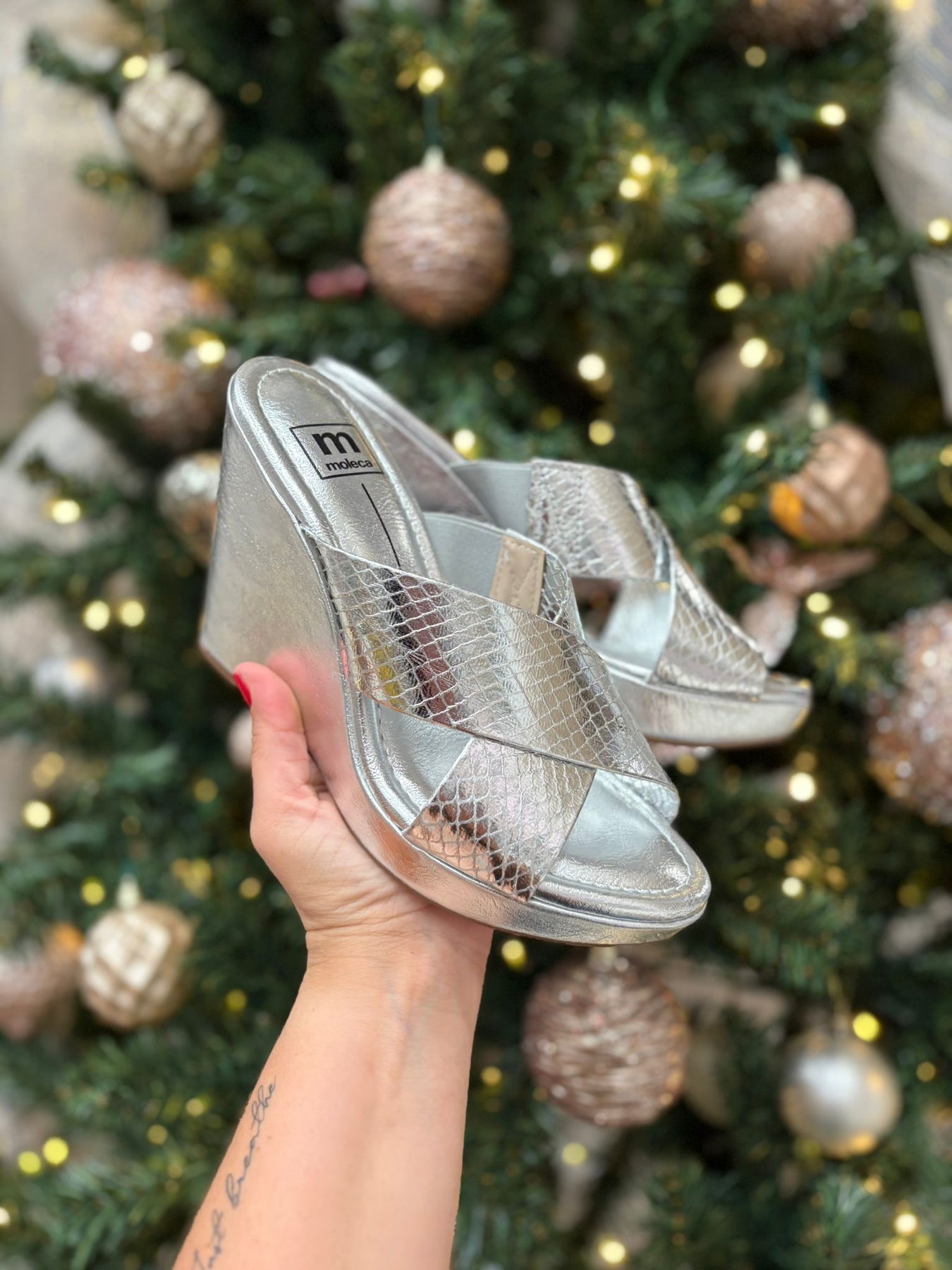 Elevate your glam factor with M 5411.1501! This elegant wedge from Moleca features a metallic design that adds a touch of style to any outfit. Step into comfort and style with the perfect blend of fashion and function.